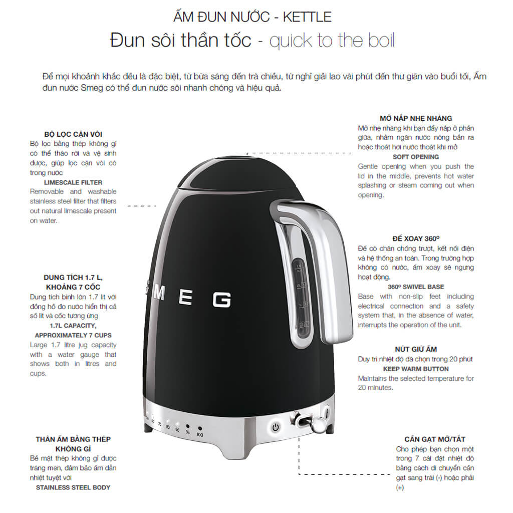 Ấm đun nước chỉnh nhiệt Smeg KLF04BLEU