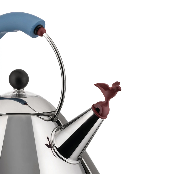 Ấm đun nước quai xanh Alessi có còi hình con chim là một trong những sản phẩm bán chạy nhất của thương hiệu Alessi. Thiết kế của chiếc ấm này được tạo ra bới Michael Graves vào năm 1985, pha trộn những ảnh hưởng từ Nghệ thuật châu Âu, Pop Mỹ và trích dẫn từ các nền văn hóa tiền Columbus. Ngôn ngữ hình ảnh độc đáo của Graves là lý do đằng sau thành công phi thường mà ấm đun nước đã có được. Hình ảnh chú chim với ý nghĩa thông minh, thanh lịch nhưng đồng thời vui tươi, vui vẻ.