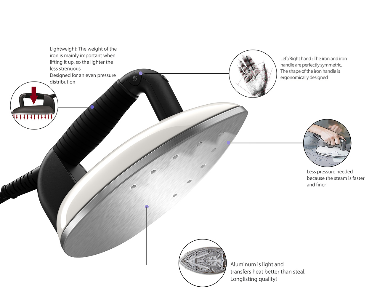 - Mặt đế bàn ủi bằng nhôm, bề mặt nhám.