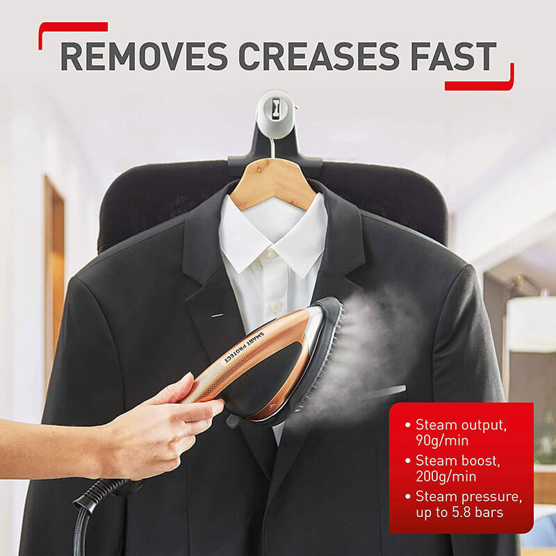 - Các mẫu được chọn bao gồm các phụ kiện tiện dụng như bàn chải vải, được thiết kế cho các loại vải dày và móc treo có thể tháo rời để đơn giản hóa quá trình hấp của bạn.