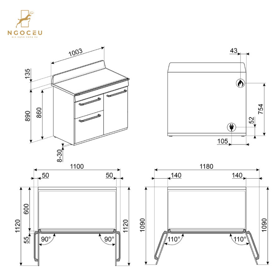 - Kích thước (C x R x S): 900 × 1000 × 600 mm