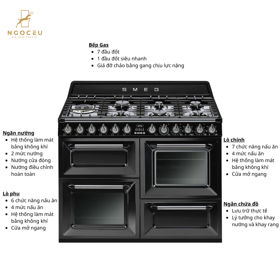 Bếp gas hỗn hợp kèm lò nướng Smeg TR4110BL1 - 110cm