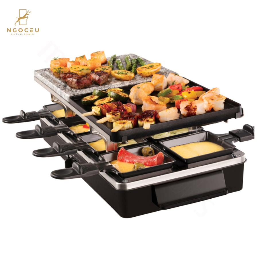 - Chức năng đa dạng: Kết hợp nhiều chức năng như nướng, chiên, và nấu Raclette, sản phẩm đặc biệt phù hợp cho các bữa tiệc, họp mặt gia đình hoặc những bữa ăn ấm cúng.