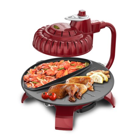 – Một khay nướng tròn với 2 chức năng nướng có đường thoát dầu mỡ xuống khay chứa mỡ riêng