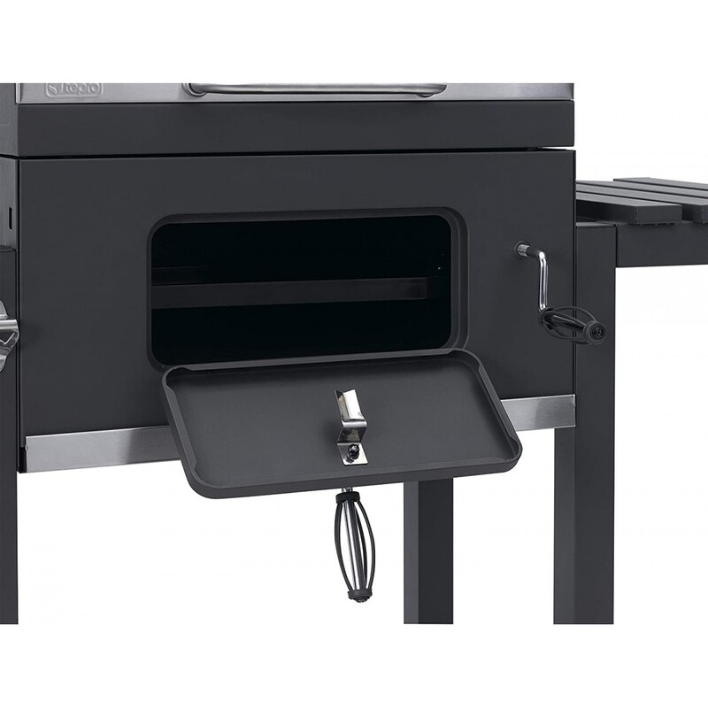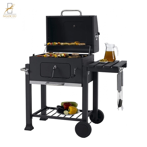 Vỉ nấu tráng men, giá hâm và khay than, có thể dễ dàng điều chỉnh độ cao bằng tay quay.
