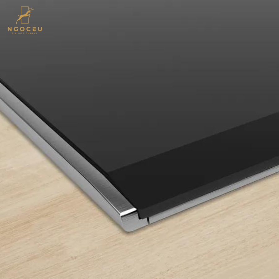 - Thiết kế viền nhôm chắc chắn, bề mặt bếp đen sáng bóng: