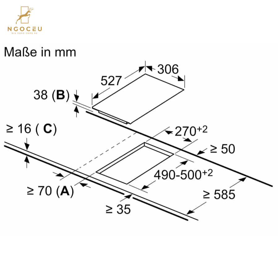 + Kích thước của bếp từ Domino Bosch PKF375FP2E có kích thước là 38 x 306 x 527mm (CxRxS), kích thước lắp đặt 38 x 270 x 490 (CxRxS) với tổng trọng lượng chỉ 5.2kg.
