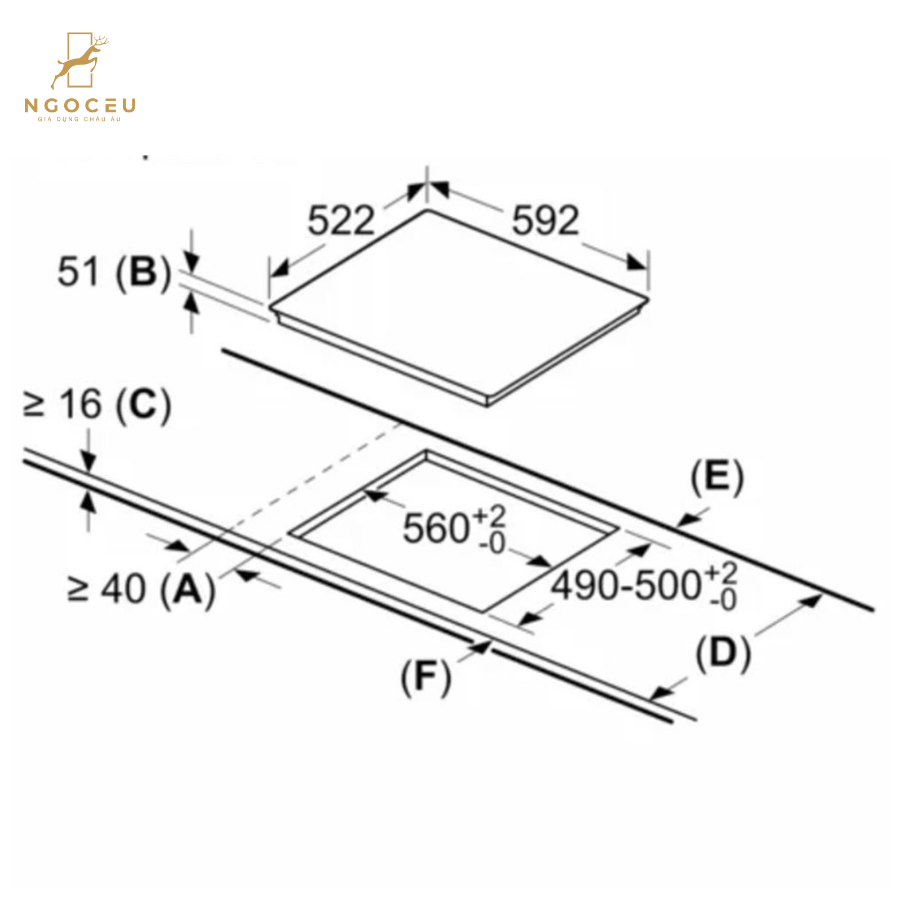 - Kích thước cắt đá (RxS): 560 x 490-500 mm