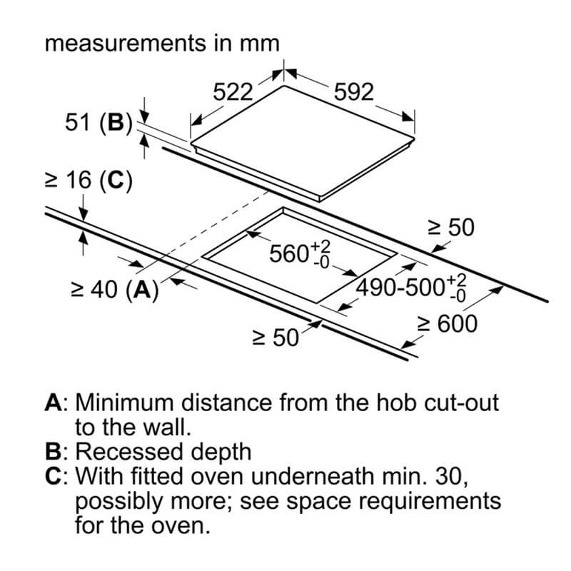 – Kích thước bếp ( C x R x S ) 51 x 592 x 522 mm