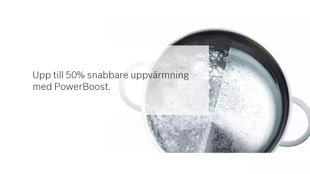 - Chức năng PowerBoost: là chức năng nấu siêu nhanh của bếp từ Bosch giúp thiết bị gia tăng nhiệt nhanh chóng với mức công suất của bếp vượt qua công suất định mức của bếp khoảng 1,5 lần. Thực chất, PowerBoost là phím tắt giúp người dùng nhanh chóng đẩy công suất lên lớn hơn bình thường. Khi sử dụng chức năng này sẽ giúp giảm thời gian nấu nướng xuống một cách đáng kể, lên tới khoảng 50%.