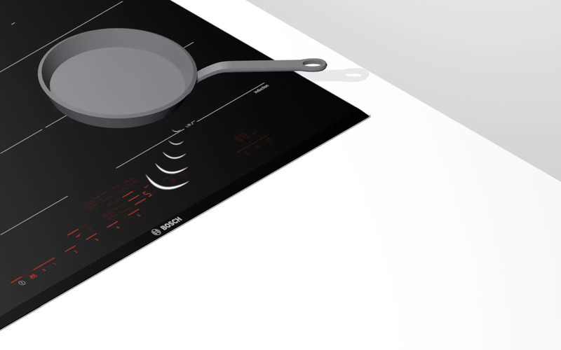 - Tính năng tự nhận diện nồi trên Bosch PUJ61RBB5E cho phép bếp nhận biết kích thước của nồi và chỉ đun nóng phần diện tích tiếp xúc đáy nồi, giúp tiết kiệm thời gian và năng lượng.