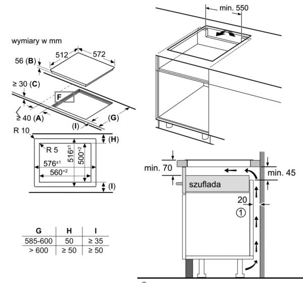 - 1 vùng nấu lớn Ø380 mm x 240 mm. (3.3kw max 3.7kw) hoặc 2 x Ø 190 mm (2.2 kW max 3.7 kW)