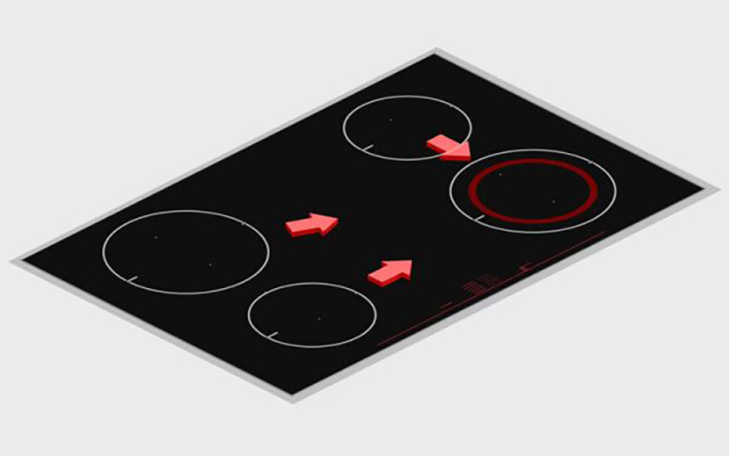 - Nếu bạn di chuyển nồi từ vùng nấu này sang vùng nấu khác khi nấu, mức nhiệt độ không cần phải được điều chỉnh riêng lẻ. Thay vào đó, vùng nấu mới áp dụng các cài đặt nhiệt độ và thời gian nấu cũ – tất cả những gì bạn cần là chạm vào nút để xác nhận.