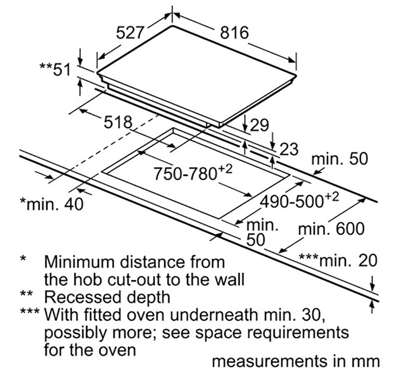 – Có thể kết hợp thành 2 vùng nấu từ 400×230 mm 3.3 KW (max. 3.7 KW)