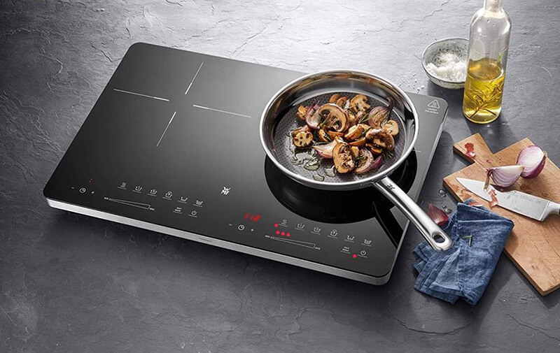Bếp từ đôi WMF Kult X thiết kế hoàn hảo đến từ WMF. Thiết kế hiện đại, sang – sịn –mịn, tiện dụng.Không phụ thuộc vào không gian – dù trong nhà bếp nhỏ, trên bàn, trên sân thượng hoặc trong khi cắm trại, không phụ thuộc vào thời gian và địa điểm, bếp từ cảm ứng đôi WMF Kult X có thiết kế thuyết phục với vỏ Cromargan® màu đen cao quý chịu lực, chịu nhiệt tốt, sáng bóng, sang trọng. Thiết kế mỏng 4cm, bo viền inox 18/10 sang trọng chắc chắn khỏe mạnh. Được thiết kế cách điệu vùng nấu hình dấu cộng ưu điểm là diện tích sử dụng sẽ lớn hơn. Tự động phát hiện nồi, đáy chảo có đường kính lên tới 28 cm, bảo vệ quá nóng và “chia sẻ năng lượng” để sử dụng tối ưu hiệu suất tổng thể là những tính năng thông minh nổi bật mà không phải bếp từ thông thường nào cũng có được.