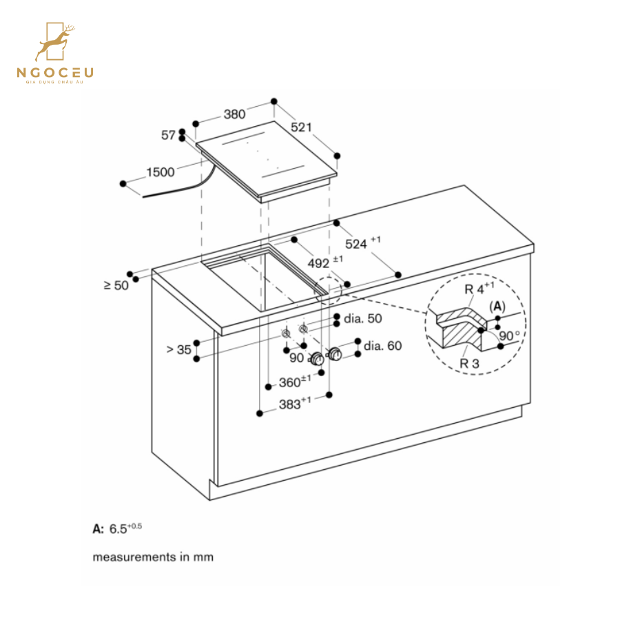 - Thiết kế lắp âm tinh tế (Flush-Top Frame): Mặt bếp được thiết kế để lắp phẳng với mặt bàn, tạo nên sự chuyển tiếp liền mạch giữa thiết bị và bề mặt bếp. Không chỉ mang lại vẻ ngoài thanh lịch, tinh gọn và sang trọng, thiết kế này còn giúp việc vệ sinh trở nên dễ dàng hơn, ngăn chặn bụi bẩn hay thức ăn thừa bám vào khe hở – đảm bảo tính tiện nghi và sạch sẽ lâu dài.