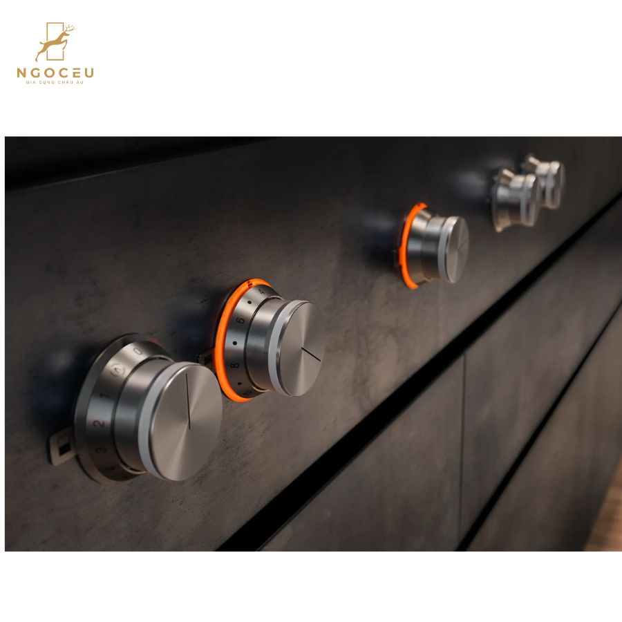 - Núm điều khiển cao cấp: Núm xoay bằng thép không gỉ nguyên khối, có thêm phiên bản phủ đen mạnh mẽ, mang lại cảm giác chắc tay, giúp kiểm soát nhiệt độ chính xác và thể hiện phong cách riêng trong gian bếp.