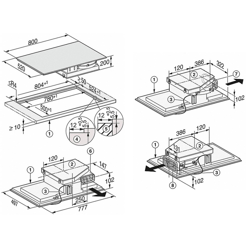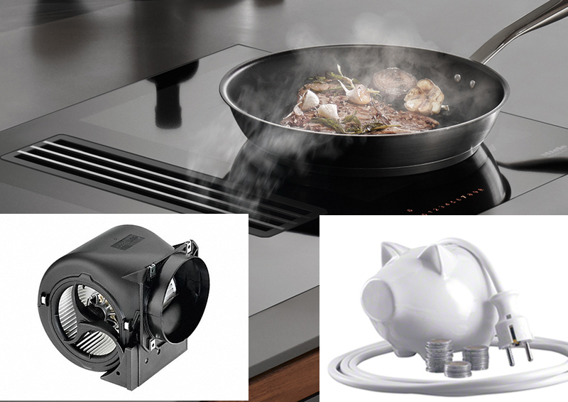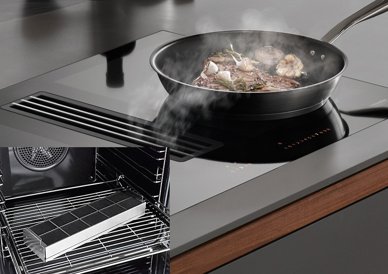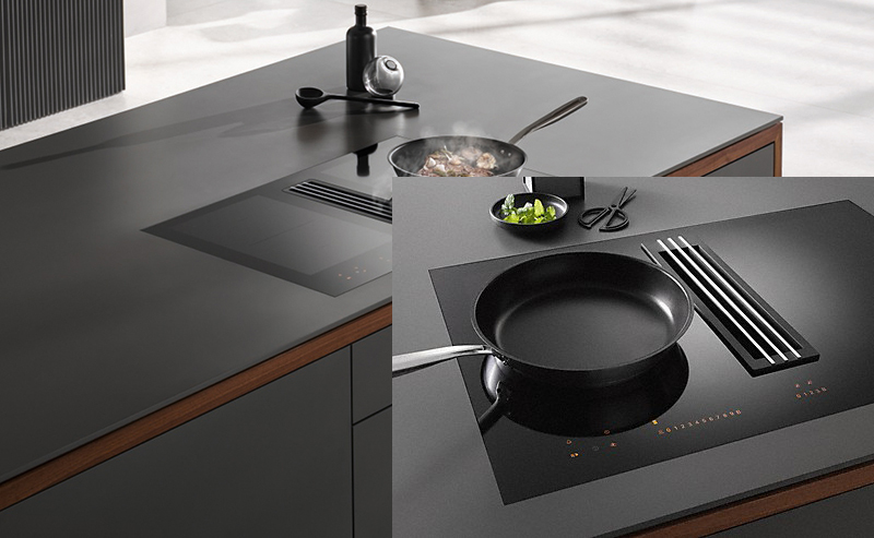 - Bếp từ tích hợp máy hút mùi với 2 vùng nấu PowerFlex và máy hút mùi âm.