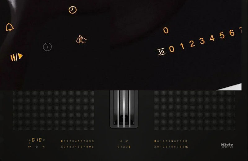 Việc chọn lựa mức công suất nấu và các cài đặt khác trên Bếp Từ Miele KMDA 7634 FL được thực hiện cực kỳ đơn giản với các biểu tượng trực quan cùng dãy số chọn công suất cho các vùng nấu khác nhau. Màn hình hiển thị chuỗi số với đèn nền màu vàng có thể dễ dàng đọc được từ mọi góc độ.