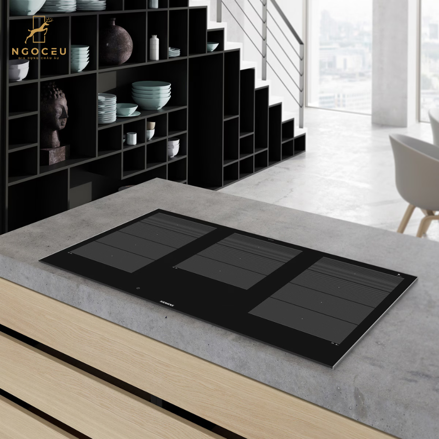 - Thiết kế chắc chắn mang lại sự hiện đại và sang trọng: Bếp từ Siemens EX975KXW1E IQ700 được thiết kế với viền bằng nhôm chắc chắn cùng với 2 đường vát tính tế ở cả mặt trước và sau, tô thêm điểm nhấn sang trọng cho căn bếp của bạn. Bề mặt bếp được trang bị mặt kính đen bóng, giúp căn bếp của bạn luôn sáng bóng. Bếp từ Siemens rất phù hợp với kiểu lắp âm, tạo nên thẩm mỹ cho căn bếp hiện đại.