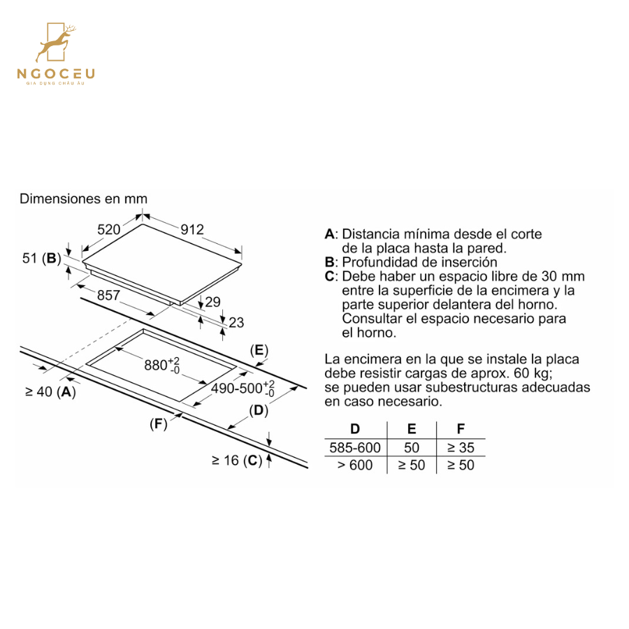- Kích thước cắt đá (RxS): 880 x 490-500 mm