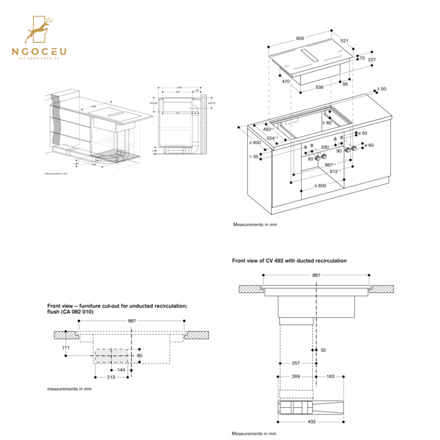 - Hệ thống hút mùi hiệu suất cao tích hợp ngay trong bếp