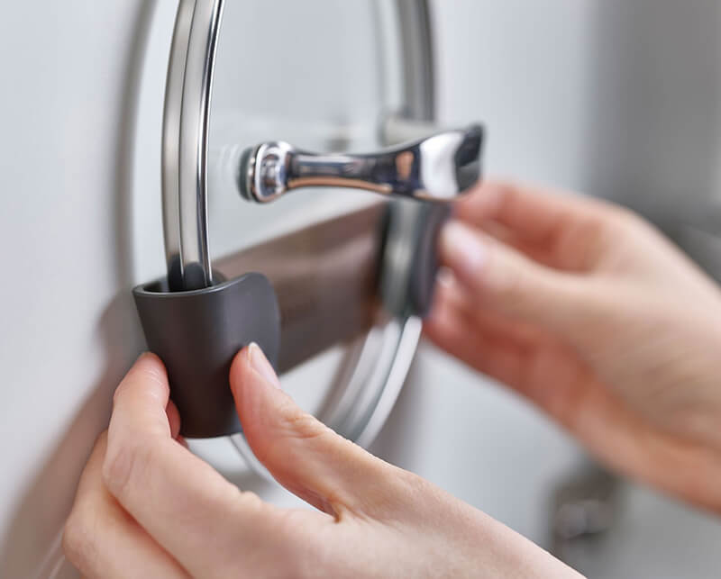Nhanh chóng và tiện lợi vì không phải đóng đinh, hay khoan vít. Joseph thông minh đã tính toán để chiếc holder này có thể treo được cả vung kính nặng, vung inox phù hợp với nắp đậy có đường kính từ 16 đến 24 cm.