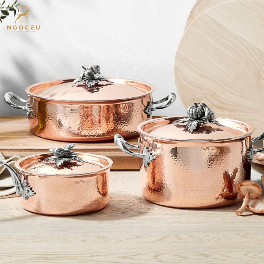- Một công nghệ tiên tiến đã cho phép tạo ra những công cụ nấu ấmazing mà sự khéo léo của các nghệ nhân làm đồng của Ruffoni đã biến thành những tác phẩm tuyệt vời. Một dòng sản phẩm bằng đồng rắn dày 2,3mm để kiểm soát nhiệt độ tốt nhất với một lõi nhôm mỏng và bên trong là thép không gỉ.