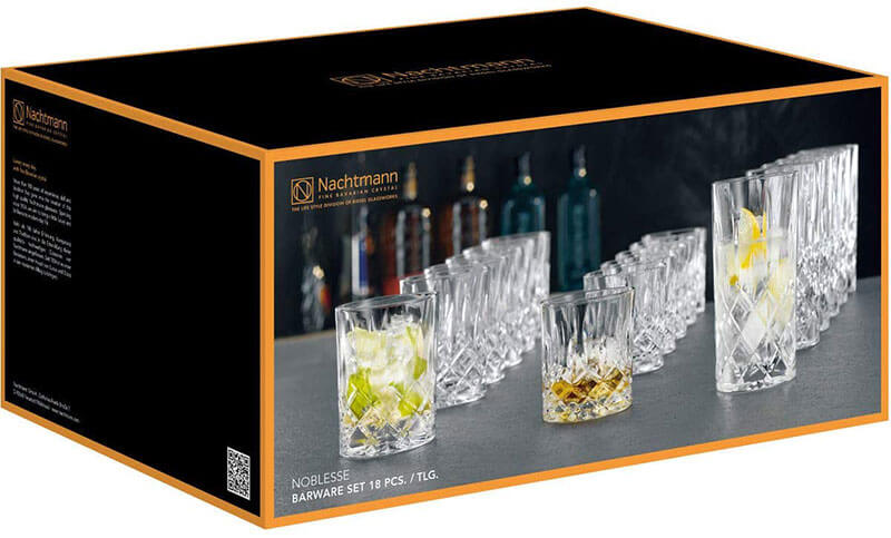 - Bộ 18 cốc Nachtmann Noblesse Becher 101764 thiết kế pha lê bắt mắt khiến không gian nhà bạn chính là tâm điểm độc nhất của bữa tiệc.