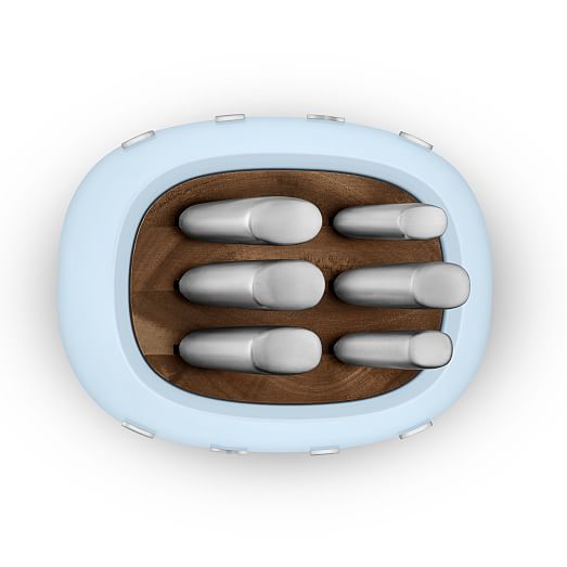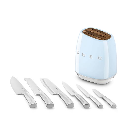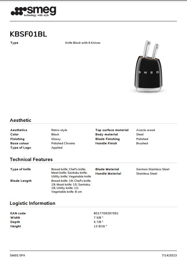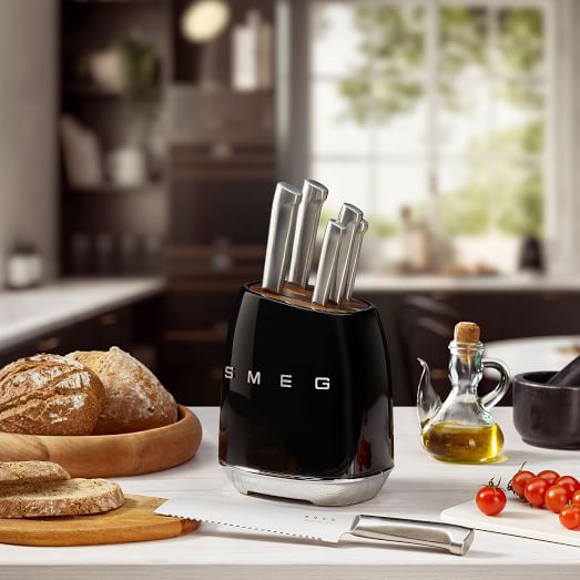 - Bên ngoài bằng thép carbon sơn tĩnh điện màu Kem bóng để phối hợp với các thiết bị đặt trên bàn SMEG khác và chân chống trượt giữ cho khối không bị trượt xung quanh khi bạn lấy dao ra. Chỉ rửa tay.