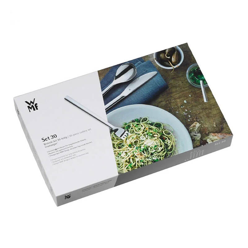 – Bộ dao kéo WMF có sẵn trong một loạt các bộ: phổ biến nhất là bộ dao kéo 30 mảnh cho 6, bộ 60 mảnh cho bộ 12 và 66 mảnh cho 12, cộng với 6 miếng phục vụ phù hợp.