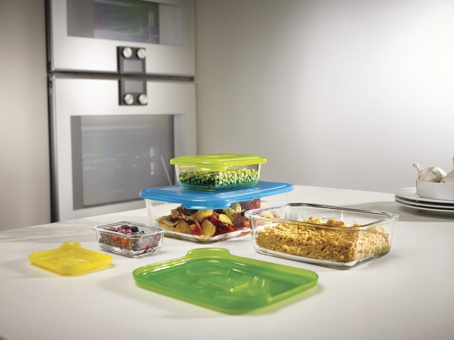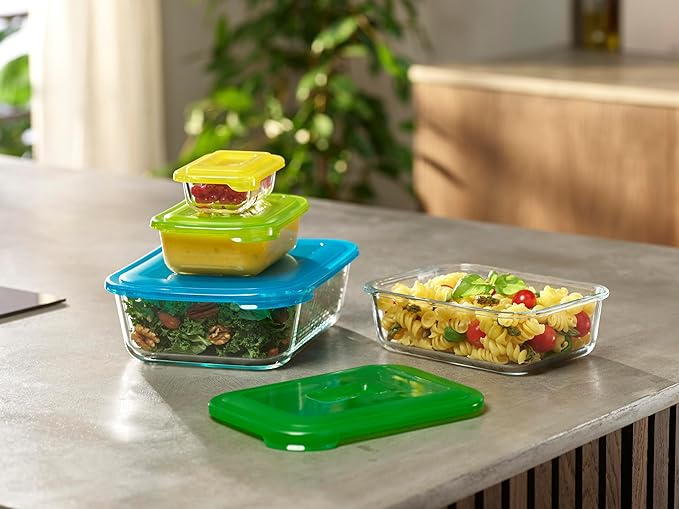 – Giống như phần còn lại của phạm vi Nest, Nest Glass Storage có thể được xếp chồng lên nhau gọn gàng để tiết kiệm không gian khi lưu trữ. Mỗi nắp màu bám chặt vào thùng chứa của nó và có các tab dễ kéo để mở. Các nắp đậy cũng dính vào nhau khi được lưu trữ, giúp dễ dàng tìm thấy chúng trong tủ của bạn.