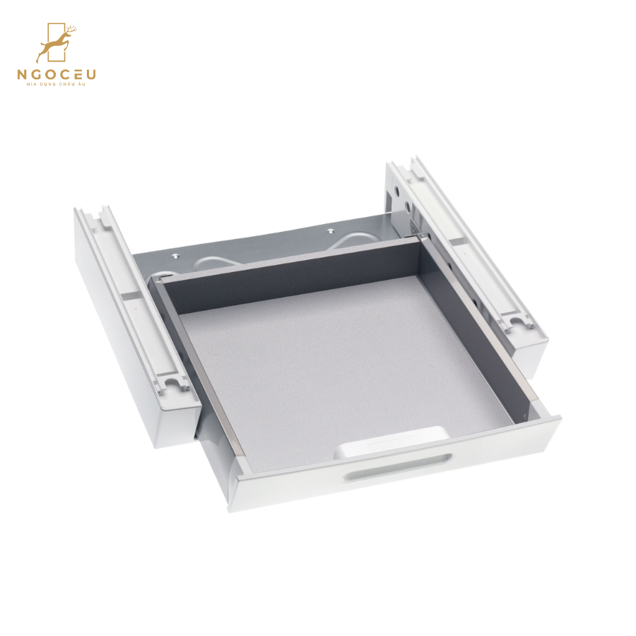 - Ngăn kéo có cơ chế đóng êm (gedämpfter Selbsteinzug) – Giúp việc đóng/mở nhẹ nhàng, hạn chế va đập và tiếng ồn, bảo vệ phụ kiện bên trong.