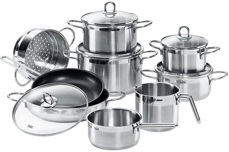 – Bộ nồi Silit nấu ăn tiết kiệm năng lượng. Xử lý ergonomic bằng thép không gỉ satin, thiết kế hiện đại phù hợp với gia đình ít người. Về thương hiệu Silit – thương hiệu “Made in Germany” và cũng là một trong những thương hiệu uy tín hàng đầu thế giới về dụng cụ nấu ăn và đồ dùng nhà bếp. Các dụng cụ nấu ăn của Silit nổi tiếng với thiết kế hiện đại, chất liệu Silargan độc quyền với tính năng kháng khuẩn và giúp tiết kiệm năng lượng tối đa, phù hợp với tất cả các loại bếp, đặc biệt với bếp từ.