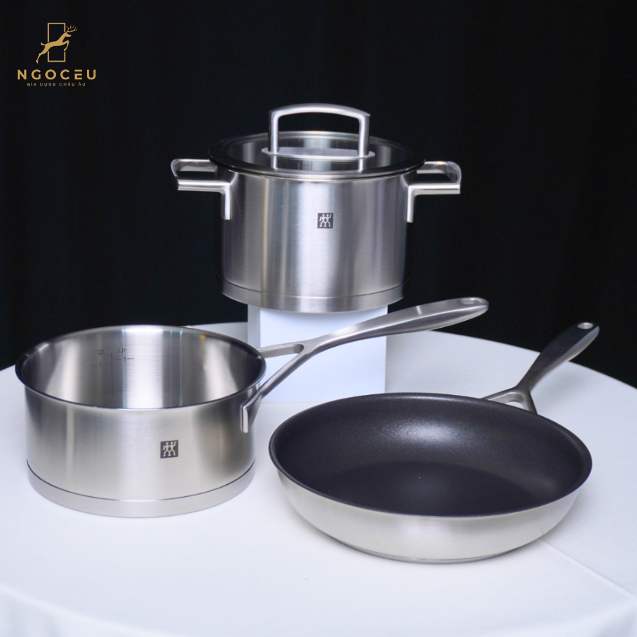 - Bao gồm: 1 nồi nấu Ø 16 cm, 1 quánh Ø 16 cm, 1 chảo Ø 20 cm