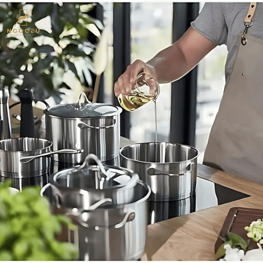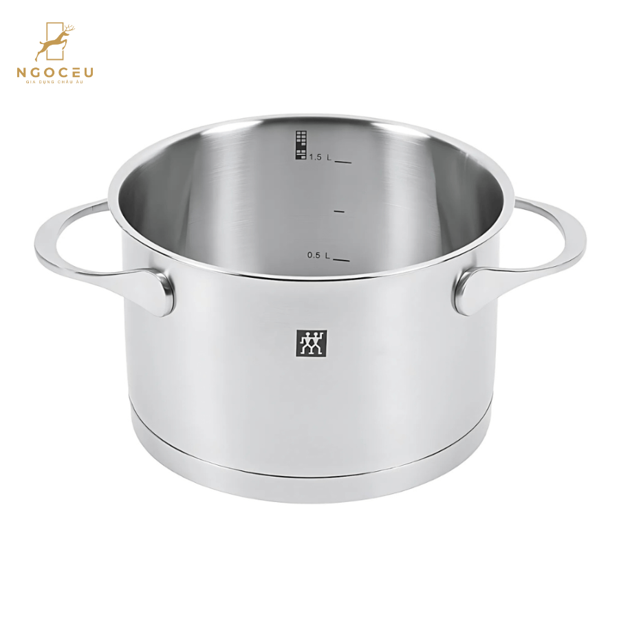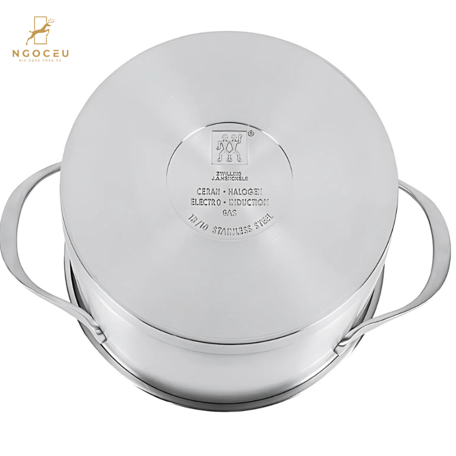 - Chất liệu thép không gỉ cao cấp: Bộ nồi ZWILLING Essence được chế tạo từ thép không gỉ 18/10, một loại vật liệu chất lượng cao nổi tiếng với khả năng chống gỉ sét và bền bỉ qua thời gian. Loại thép này không chỉ mang lại vẻ ngoài sáng bóng mà còn giữ nguyên hương vị tự nhiên của thực phẩm, không gây phản ứng hóa học khi nấu ở nhiệt độ cao.