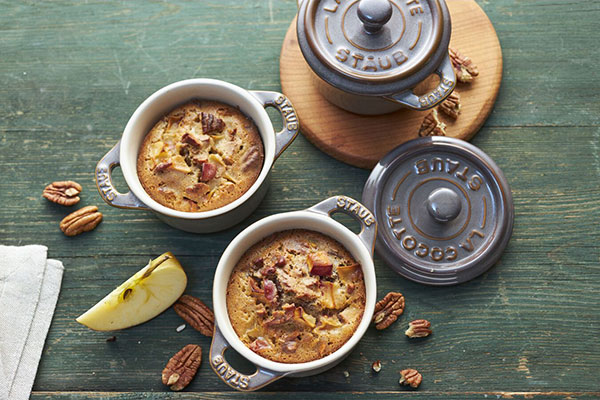 Bộ sản phẩm được chế tạo hoàn toàn bằng lớp xứ tráng men phân phối và giữ nhiệt nhẹ nhàng và không hấp thụ độ ẩm, do đó thực phẩm nướng đến độ ẩm, mềm, vàng mà không bị khô. Và bạn có thể mang chúng từ tủ đông, lò nướng đến bàn ăn một cách dễ dàng. Những chiếc cocotte mini có nắp che này rất thích hợp cho những phần ăn riêng lẻ gồm bánh mì nướng, súp, món tráng miệng nướng và hơn thế nữa.