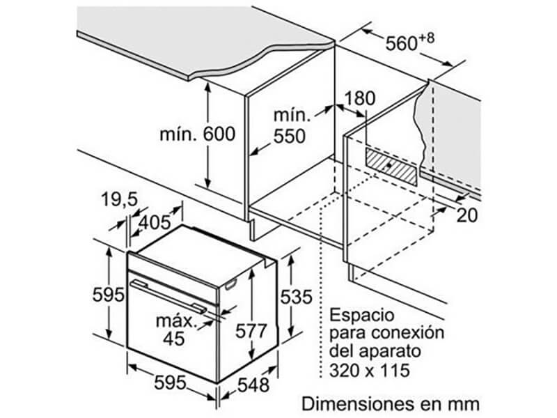 - Kích thước lắp đặt : 585-595 x 560-568 x 550 mm