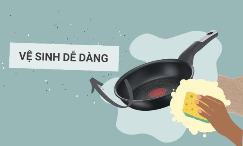 Bề mặt Bên ngoài của chảo chiên Tefal được phủ sơn chống dính, hạn chế bám dính, giúp người dùng dễ dàng làm sạch sau khi sử dụng.