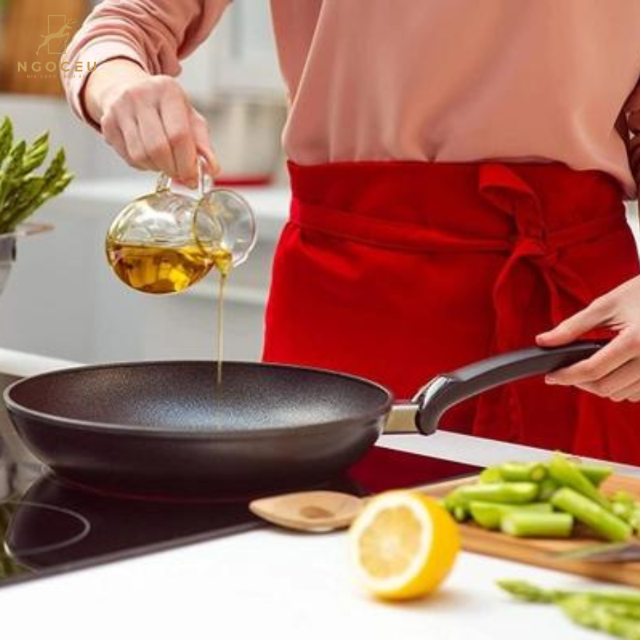 - Mặt chảo được phủ các hạt SIlic Cacbua tăng cường độ bền của lớp chống dính: Lớp hạt trên mặt chảo có tác dụng tăng cường độ bền của lớp chống dính, giúp chống trầy xước và độ ma sát của dao kéo. Nó cũng giúp tạo ra một bề mặt chống dính tốt hơn, giúp thực phẩm không dính vào bề mặt chảo và dễ dàng tháo khỏi chảo sau khi nấu. Lớp phủ hạt cũng giúp tăng cường khả năng chống trầy xước và chịu được nhiệt độ cao hơn, giúp sản phẩm có thể sử dụng lâu hơn và giảm thiểu tác động của việc sử dụng hàng ngày lên bề mặt chảo.