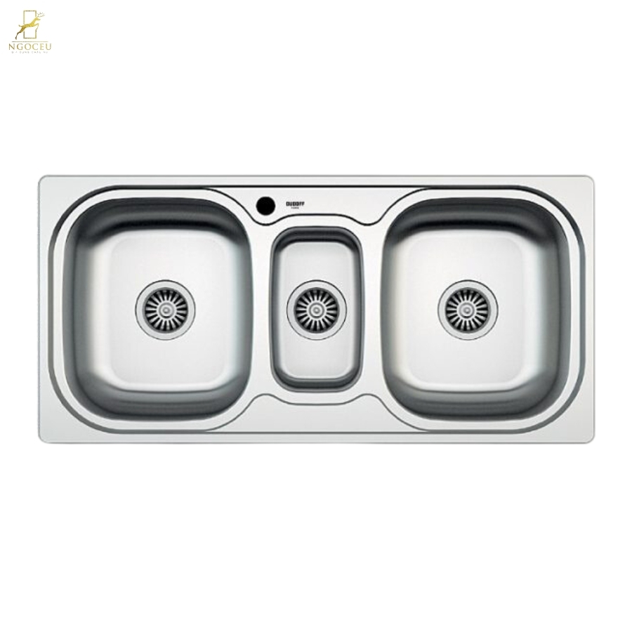 - Chậu rửa chén Dudoff London, kiểu 3 hộc lắp sát trên mặt đá.