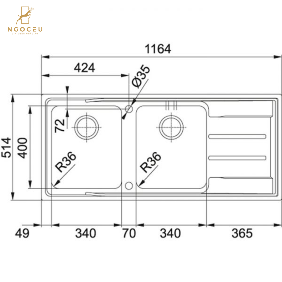 – Chậu rửa chén ANX 221 là sản phẩm thuộc dòng ASTON sản xuất tại Thụy Sỹ. Chậu rửa Inox kiểu truyền thống với 2 hố chậu bo tròn ở góc và 1 cánh bên phải.