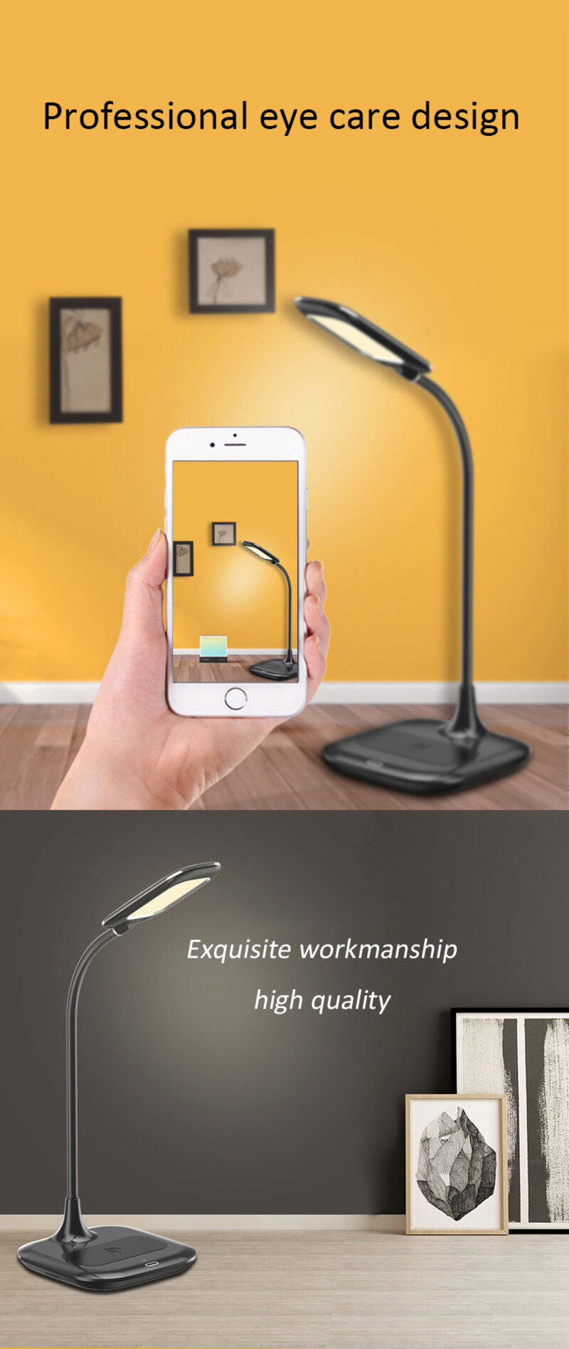 Đèn bàn LED WILIT được trang bị bộ sạc không dây cho điện thoại di động Apple, Samsung và các thiết bị khác hỗ trợ sạc không dây. Đầu ra của bộ sạc không dây là 5 W. Sử dụng điều khiển cảm ứng của đèn, độ sáng của đèn có thể được điều chỉnh trong phạm vi ba mức.