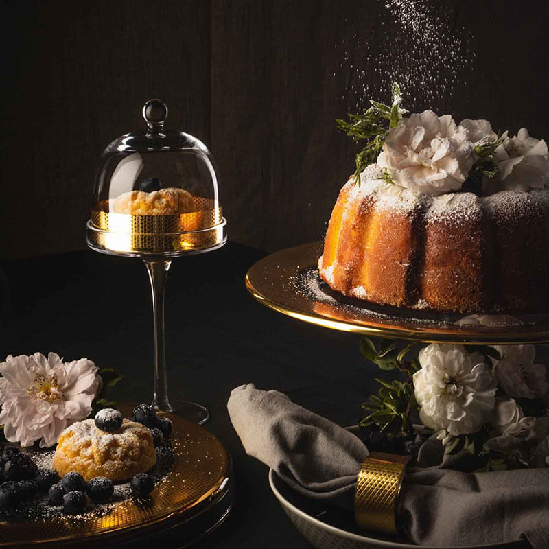 – Thiết kế tỉ mỹ từ nhưng nghệ nhân hàng đầu của Eisch, giá đựng bánh ngọt Footed cake plate 302/31 gold đem đến cho bạn sự trải nghiệm đầy chất quý tộc và sang trọng. Mặt kính được ép bằng lá vàng nguyên chất, nguyên liệu thủy tinh siêu bền. Đây chắc chắn sẽ là sản phẩm bạn không thể bỏ lỡ trong nhưng bữa tiệc thời thượng và sang trọng.