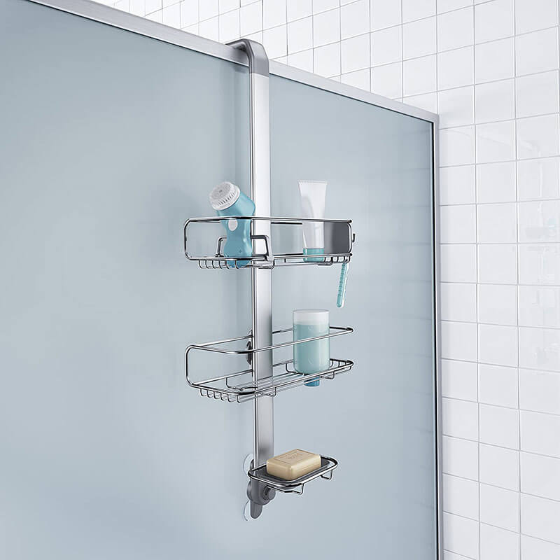 đặc trưng kệ có thể điều chỉnh. Các kệ khung dây có thể điều chỉnh cho phép bạn tùy chỉnh hộp đựng đồ tắm của mình. Trượt chúng lên, xuống hoặc sang một bên để nhường chỗ cho các chai cao hơn (một số kiểu chỉ điều chỉnh lên hoặc xuống).