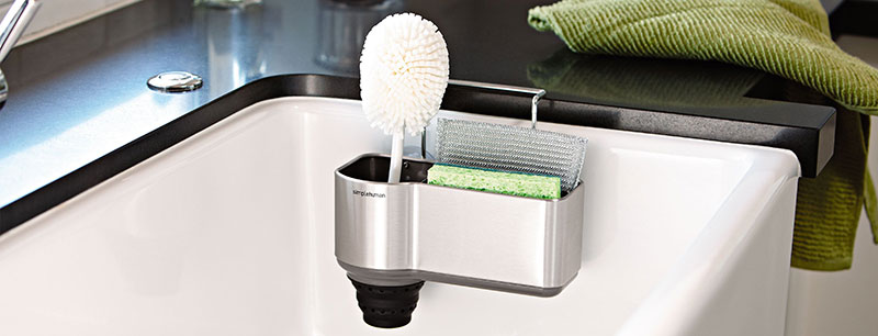 Giỏ đựng dụng cụ rửa bát Simplehuman thiết kế kiểu giá treo một cách khoa học và đẹp mắt.