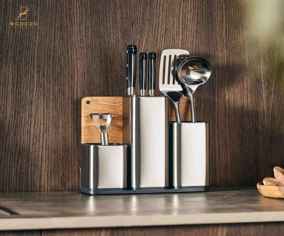Thiết kế nhỏ gọn của dụng cụ sắp xếp mặt bàn đầy phong cách này có nghĩa là bạn có thể cất dao, đồ dùng và đồ dùng ở một nơi thuận tiện và trông cũng đẹp mắt trong nhà bếp của bạn.