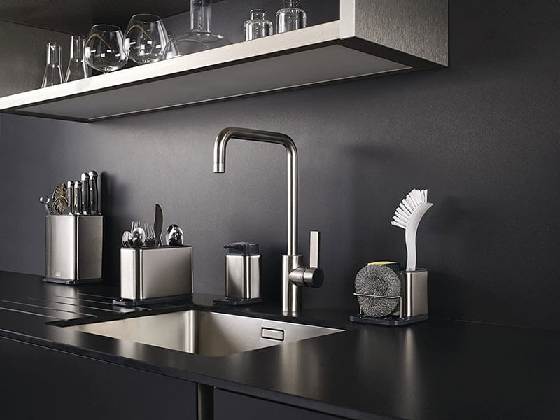 – Khay đựng bông rửa bát, chai nước rửa bát và bàn chải cọ bồn, cực kỳ tiện và gọn, nhìn khu vực rửa bát ngay ngắn xinh xắn hơn nhiều.