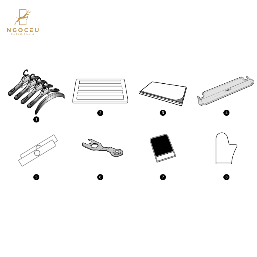 Các phụ kiện đi kèm 1. Móc áo (Hình dạng và số lượng móc treo có thể khác nhau tùy theo mẫu máy )