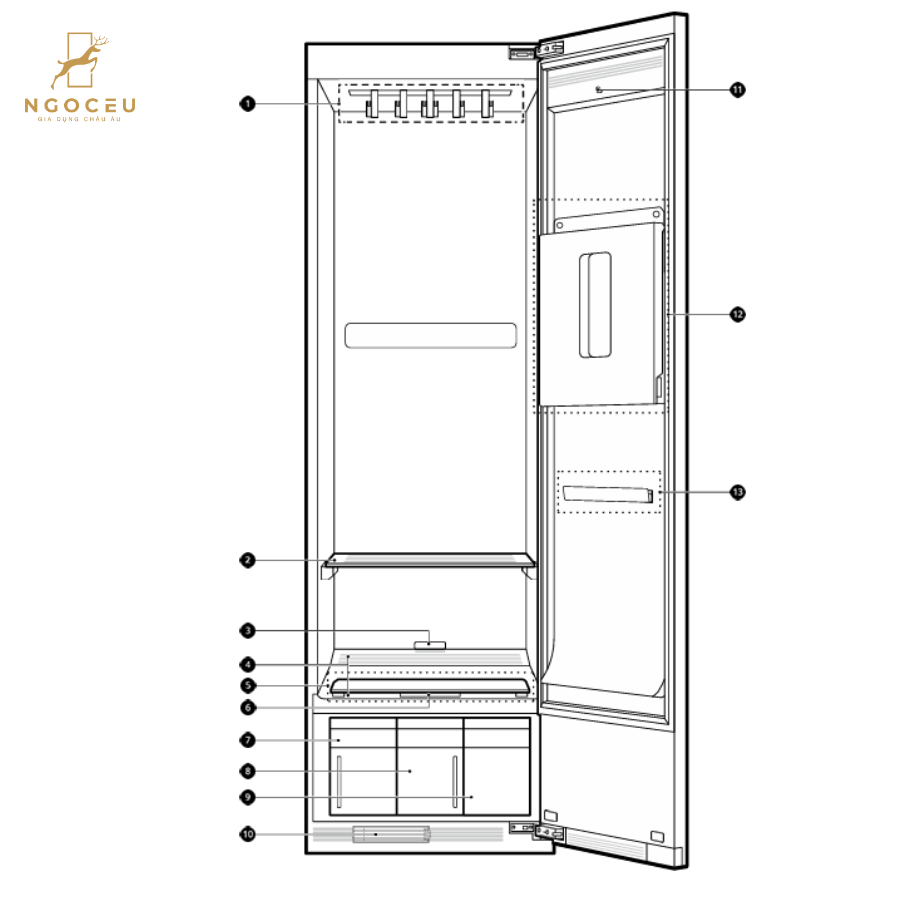 1. Móc áo (Hình dạng và số lượng móc treo có thể khác nhau tùy theo mẫu máy )